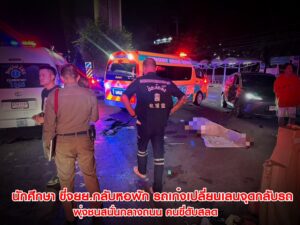 นักศึกษา ขี่จยย.กลับหอพัก รถเก๋งเปลี่ยนเลนจุดกลับรถ พุ่งชนสนั่นกลางถนน