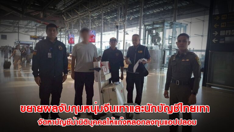 ขยายผลจับกุมหนุ่มจีนเทาและนักบัญชีไทยเทาตัวการจัดหาบัญชีม้านิติบุคคลให้แก๊งหลอกลงทุนแอปปลอม
