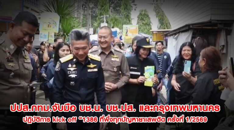 ปปส.กทม.จับมือ บช.น. บช.ปส. และกรุงเทพมหานครปฏิบัติการ kick off “1386 ที่พึ่งทุกปัญหายาเสพติด ครั้งที่ 1/2569”พื้นที่กรุงเทพมหานคร