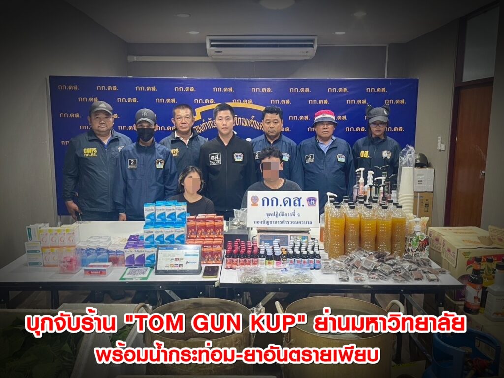 บุกจับร้าน “TOM GUN KUP” ย่านมหาวิทยาลัย พร้อมน้ำกระท่อม-ยาอันตรายเพียบ