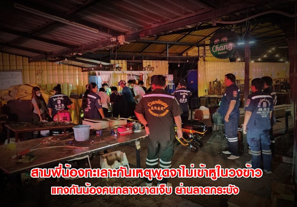 สามพี่น้องทะเลาะกันเหตุพูดจาไม่เข้าหูในวงข้าว แทงกันน้องคนกลางบาดเจ็บ ย่านลาดกระบัง