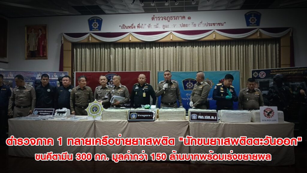 ตำรวจภาค 1 ทลายเครือข่ายยาเสพติด “นักขนยาเสพติดตะวันออก” รวบ 2 ผู้ต้องหาขนคีตามีน 300 กก. มูลค่ากว่า 150 ล้านบาทพร้อมเร่งขยายผลล่าต้นตอเครือข่ายใหญ่และยึดทรัพย์